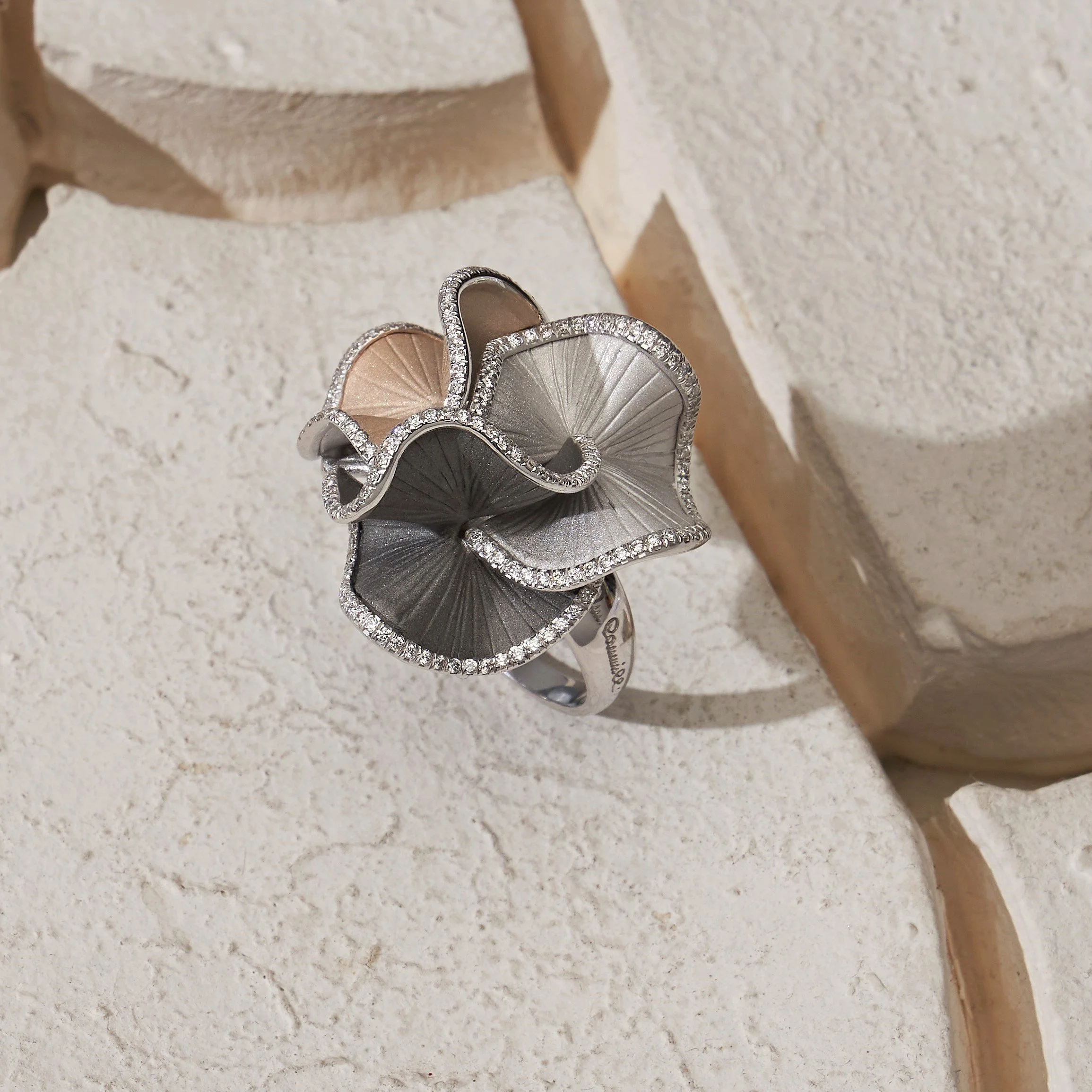 Conçus à Florence par la sculptrice et peintre Annamaria Cammilli, les bijoux de la Maison reflètent l'atmosphère créative qui imprègne leur magnifique ville italienne d'origine, Berceau de la Renaissance. Des créations précieuses façonnées par des mains expertes comme de véritables sculptures miniatures, qui se distinguent par leurs volumes vivants, leurs formes fluides et une extraordinaire tridimensionnalité. Le design unique, inspiré des formes de la nature, est enrichi de 8 nuances sophistiquées d'or 18 carats et d'une finition veloutée spéciale, résultat d'années d'expérimentation et de recherche continue. La passion des orfèvres italiens, qui travaillent et finissent chaque jour habilement les créations Cammilli, se ressent dans chaque détail.